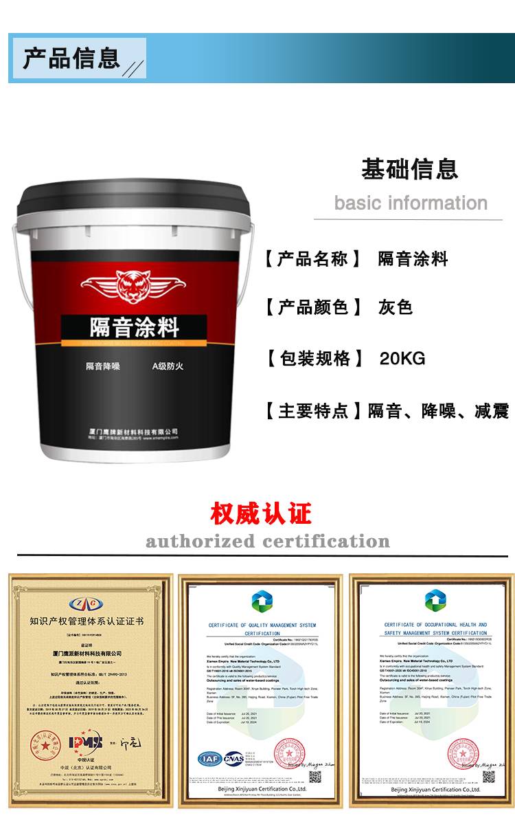 虎鹰 室内地面隔音涂料 楼板墙面隔声减震使用 吸音 降噪 A级防火材料